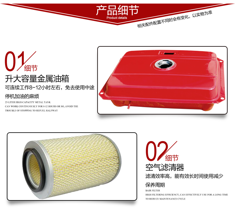 ◆發(fā)動(dòng)機(jī)的低油壓低油位自保護(hù)裝置,大容量油箱確保長(zhǎng)時(shí)間的連續(xù)工作;